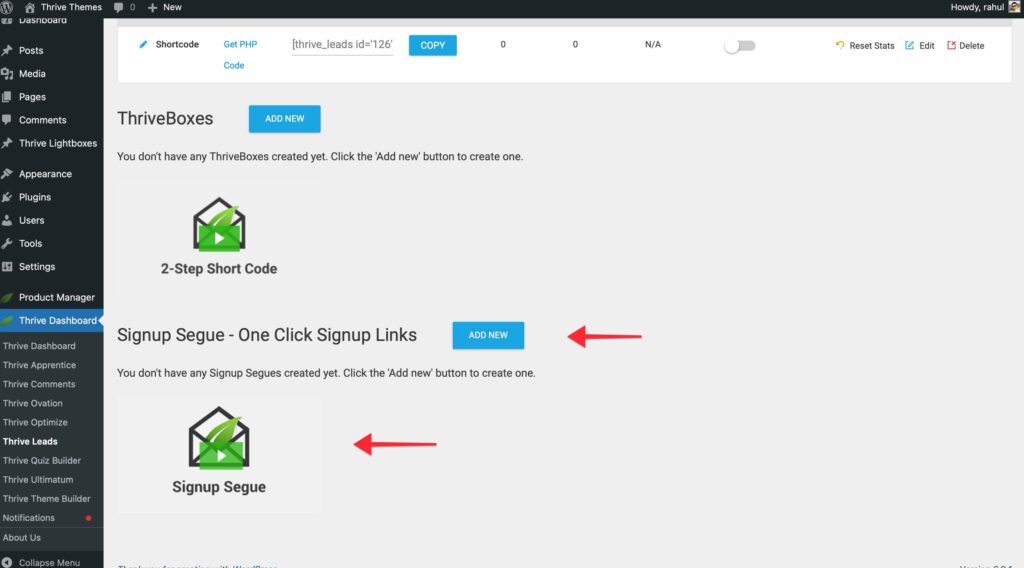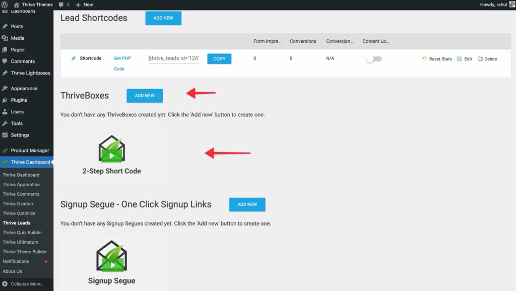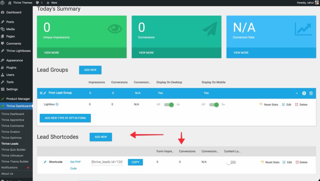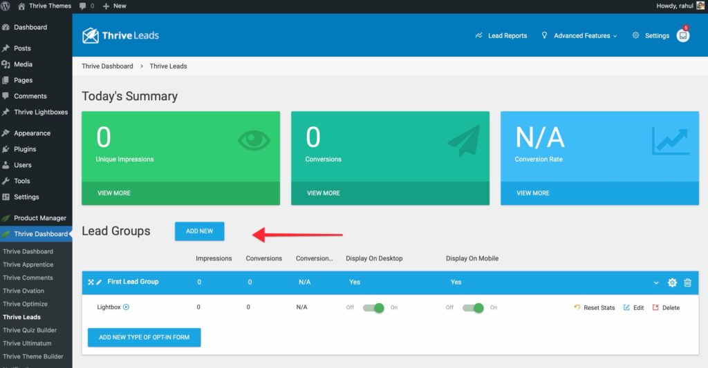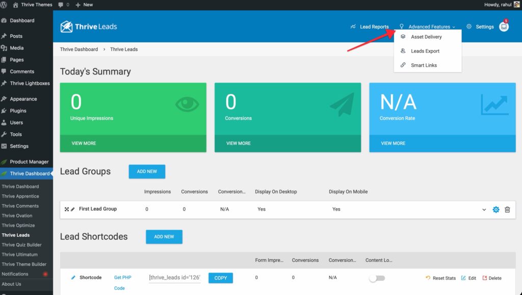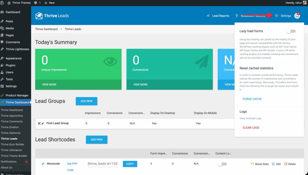 To access it, log in to your WordPress admin area and navigate to Thrive Dashboard > Thrive Leads.