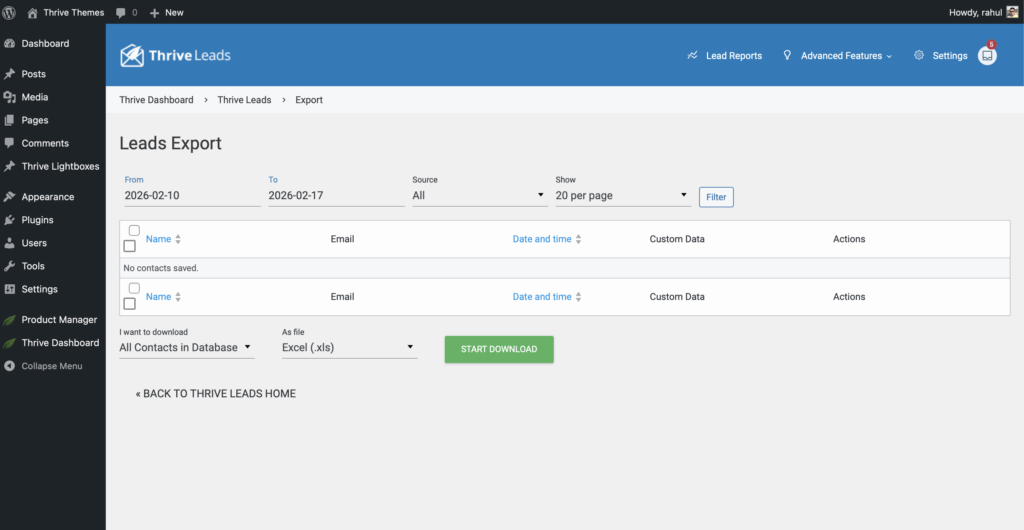 - Leads Export: View and export a CSV list of all leads captured locally by Thrive Leads.