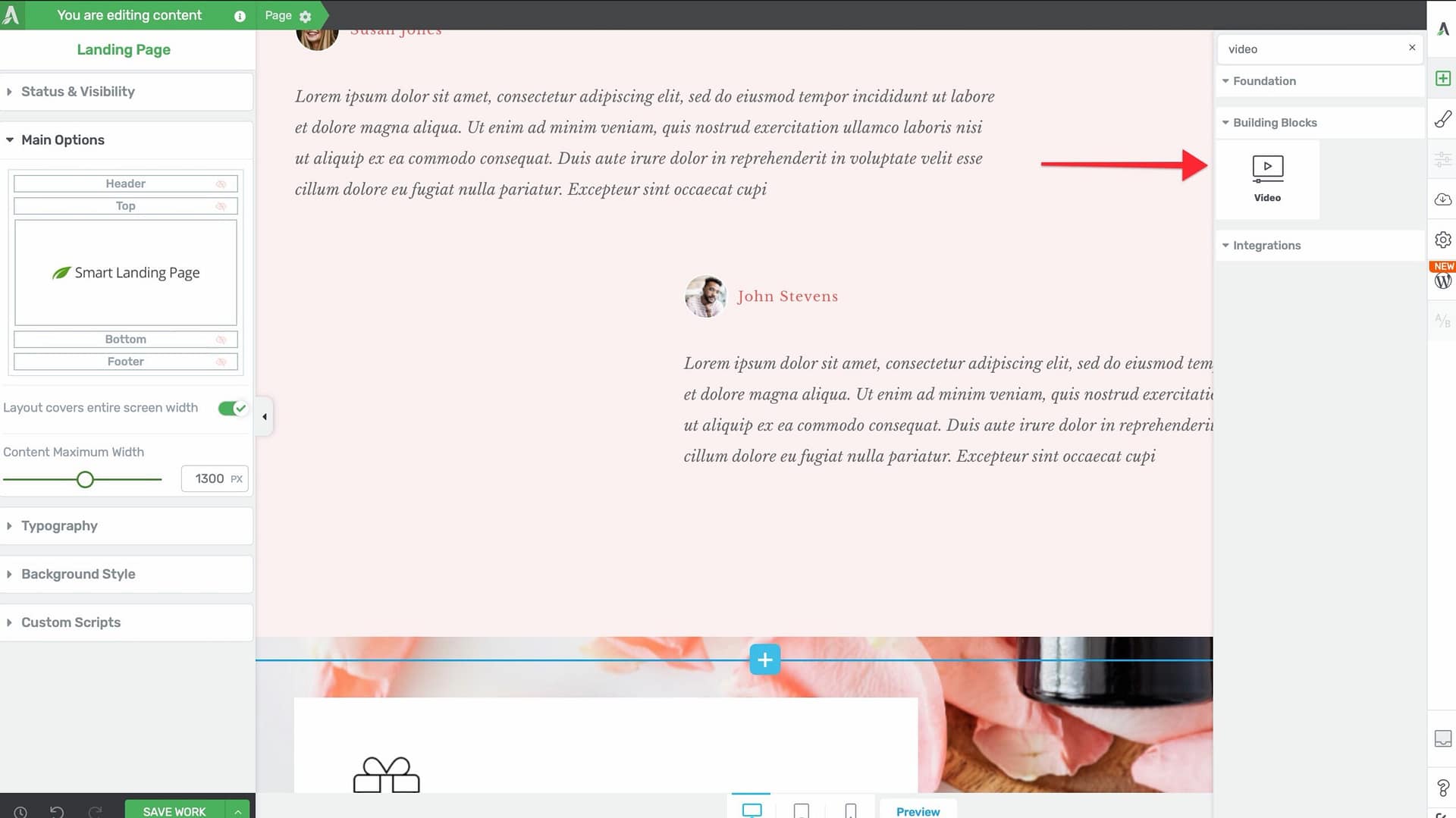 - Alternatively, scroll down to the Building Blocks section in the element list to find the Video element.