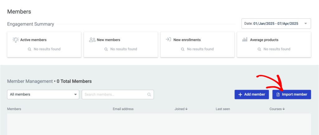 In the Thrive Apprentice members area, click on the Import member button.