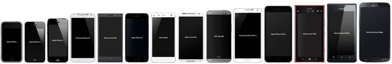 Although, the phone models shown here are outdated, what they illustrate still holds true: there are almost as many different screen sizes for phones as there are models of phones.