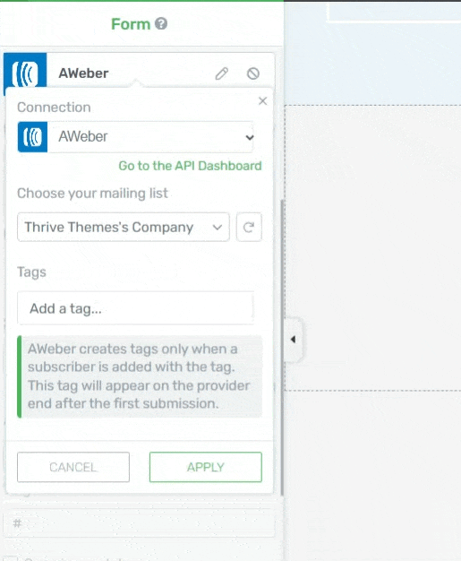 Connecting AWeber to your Thrive Themes products allows you to send leads directly to your AWeber lists when users sign up through your forms. The AWeber integration uses a secure OAuth2 connection and supports tagging, so you can automatically apply tags to new subscribers.