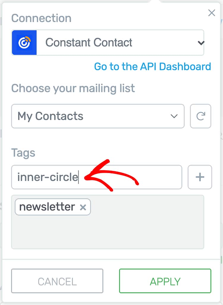 Once you’ve selected the list and added tags, click the Apply button to save the connection.