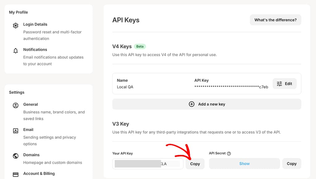 As of October 2025 (when this document is updated), the API V4 is in its beta version and therefore, copy the API V3 key to proceed with the integration with Thrive Themes.