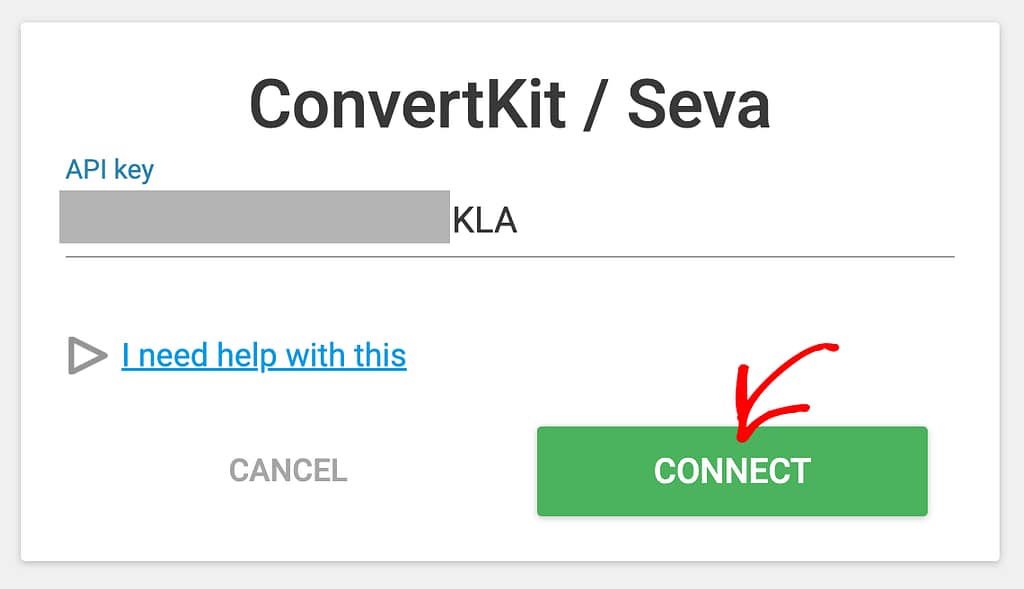 Selecting ConvertKit will ask you to enter the API Key. To proceed, enter the API Key, and click Connect.