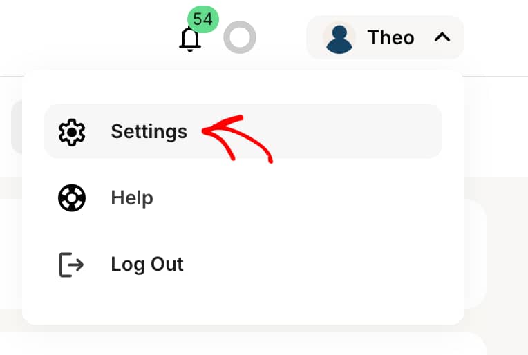 Once logged in to your Kit account dashboard, click on the profile on the right and click on Settings.