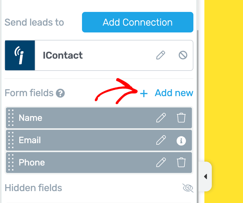 You can also add and use custom fields with this integration. To do so, you’ll have to create a new custom field in the Lead Generation form and map it with the respective field in iContact.