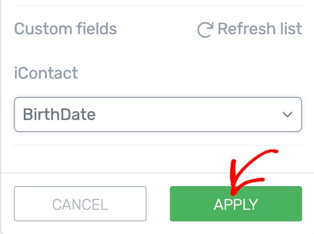 After adding the field and mapping it with the one in iContact, click the Apply button to add this custom field.
