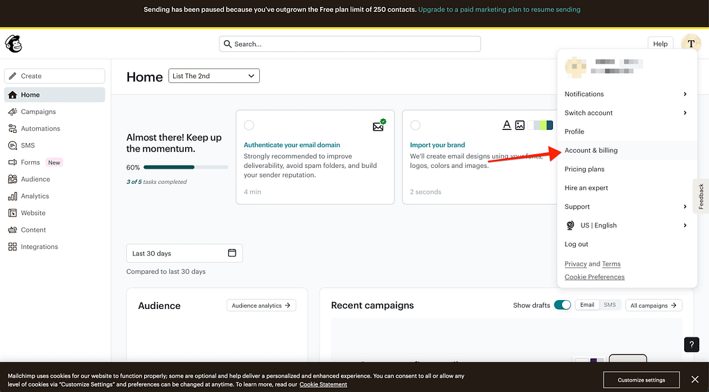 - Click your Profile Picture in the top right and select Account & billing.