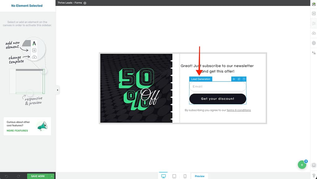 - Click on the Lead Generation element to select it.