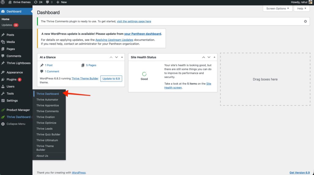 - Navigate to Thrive Dashboard > Thrive Dashboard.