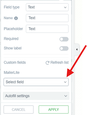 To set up the form fields that will be sent to MailerLite, follow these steps: