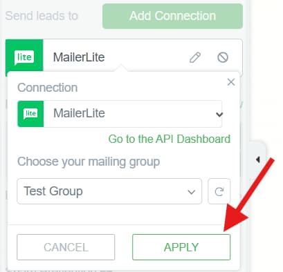 Connecting MailerLite to a Lead Generation Element