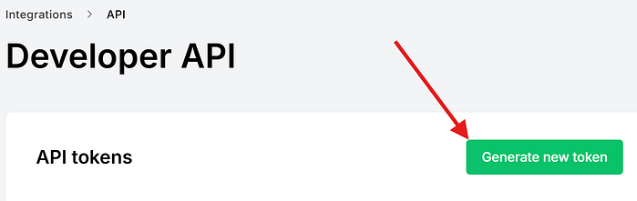 - On the Developer API page, click the Generate new token button to create a new API key.
