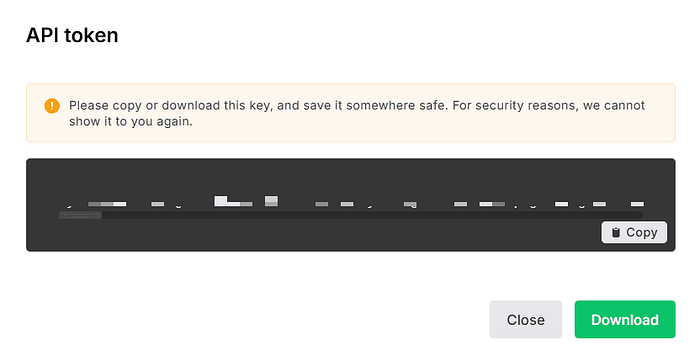 - A new pop-up will display your API token.