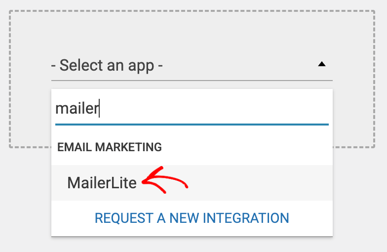 When you click to add a new connection, you’ll see a dropdown where you can select the app, MailerLite, that you want to connect to.