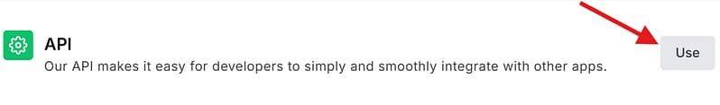 - Navigate to the Integrations page, locate the row labeled API and click Use.