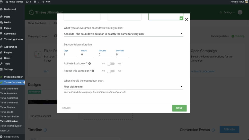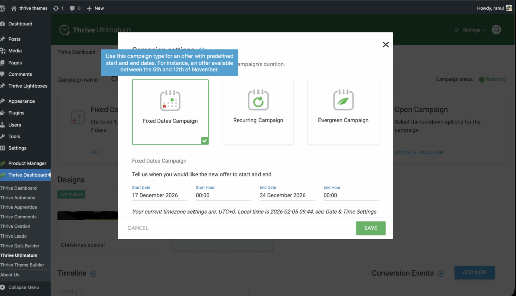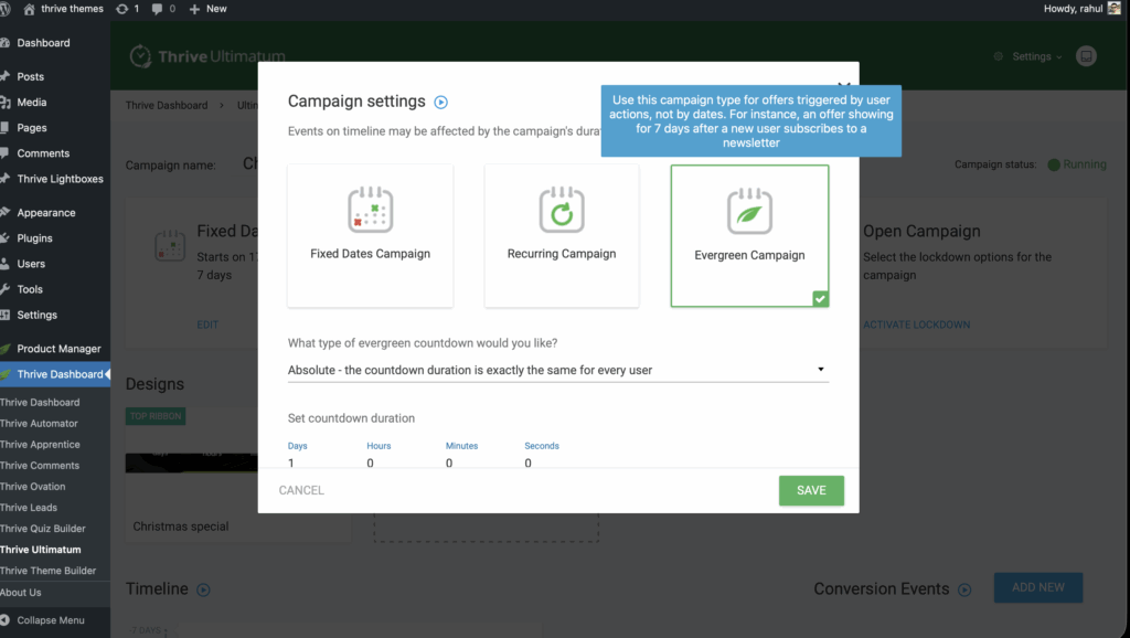 Thrive Ultimatum offers three distinct campaign types to suit different marketing strategies. Choosing the right one is the first step in creating your scarcity campaign.