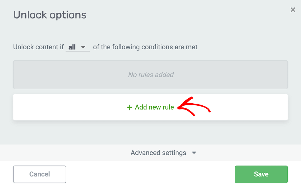 After clicking the Unlocked link, you’ll see a popup on which you click to Add a Rule.
