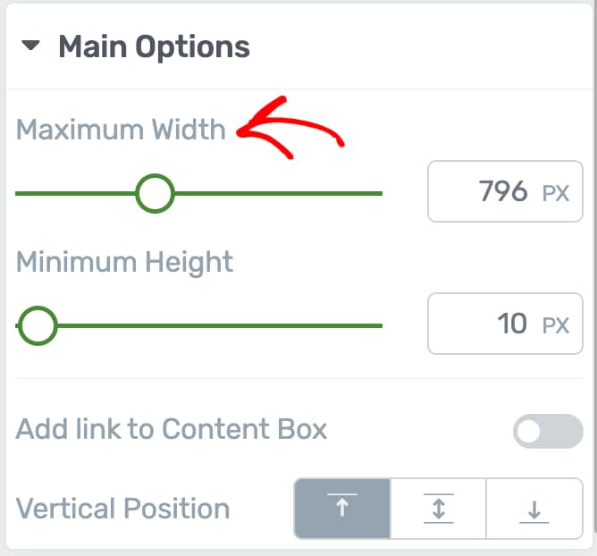 You can use this setting to modify the width of the Content Box. All you have to do is drag the slider under this option, or enter a value manually in the field next to the slider.