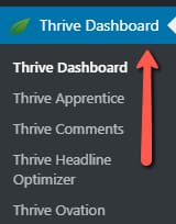 - From your WordPress Admin area, navigate to the Thrive Dashboard in the left sidebar and click on it.