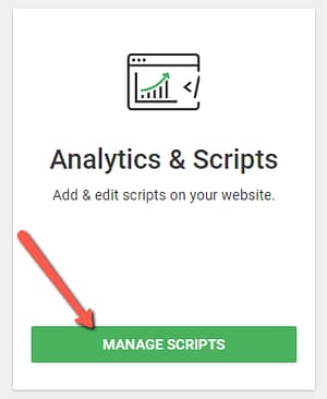 - In the dashboard, locate the Analytics & Scripts card and click the Manage Scripts button.