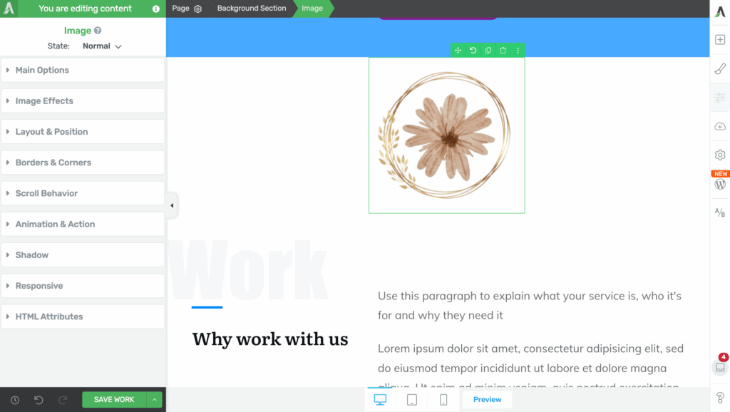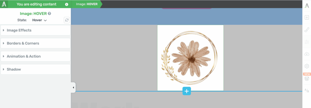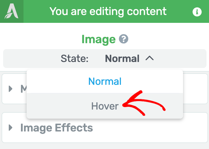 Like many other Thrive Architect elements, the Image element comes with two states – Normal, for when it is seen on the page, and Hover, for when a user hovers over it.