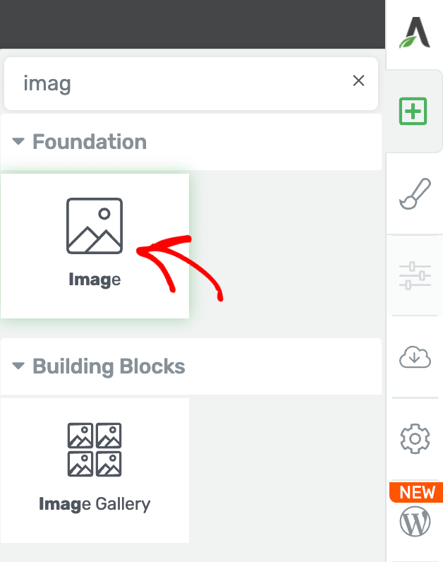 Clicking on the plus icon will open up the list of Thrive Architect elements to choose from. From this list, drag and drop the Image element on the page.