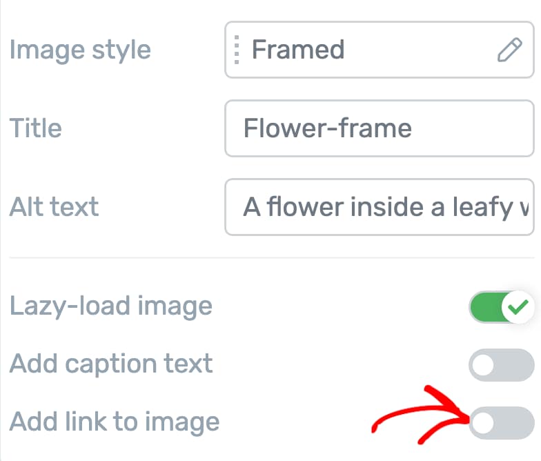 To enable an Image link, first click on the toggle button beside the Add Link to Image setting.