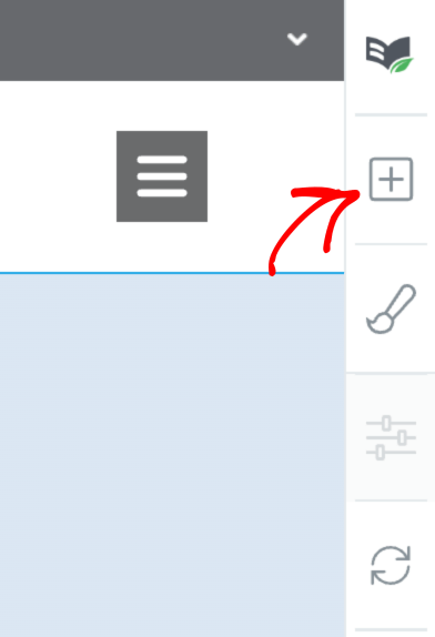 When the page is opened in the Thrive Architect editor, go to the right panel and click the plus (+) icon.
