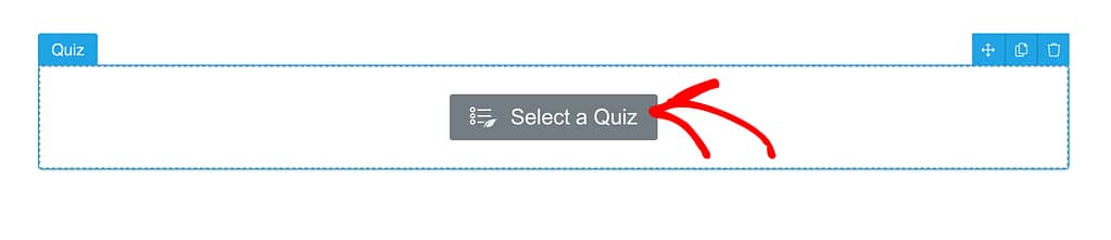 Dragging and dropping the Quiz element on a lesson page will add the element with a button to Select a quiz you want to display here.