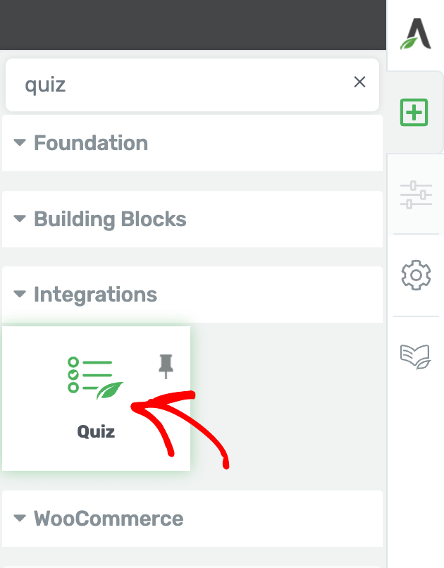 Clicking the plus icon will show up all the elements you can add to the lesson page. From this element list, drag and drop the Quiz element to where you want it on the page.