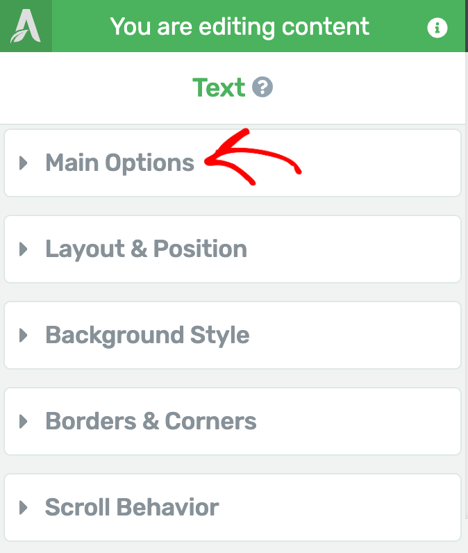 Under Main Options, you can manage various styling options such as the ones listed below.