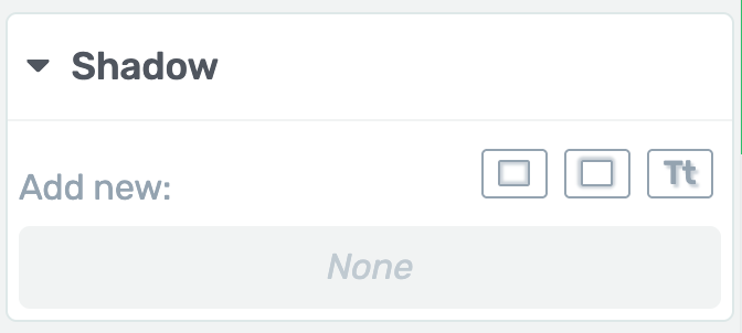 The Shadow tab for the Text element allows you to add an inner shadow, a drop shadow or a text shadow to the selected Text element.