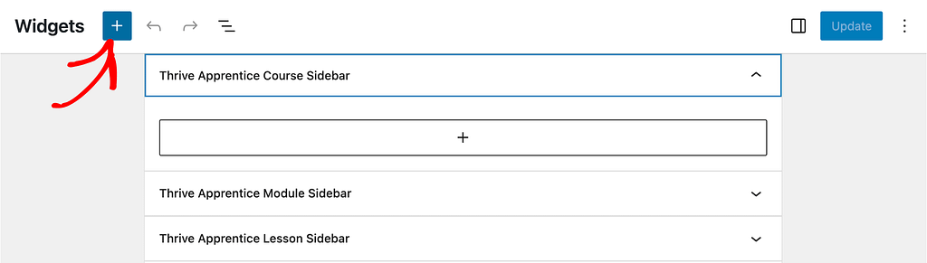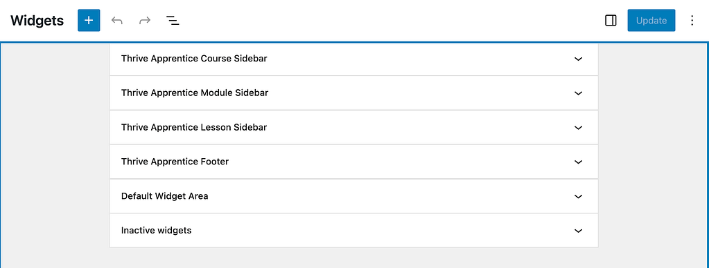 On the widgets page, you’ll see the Thrive Apprentice widget areas listed with the others available.