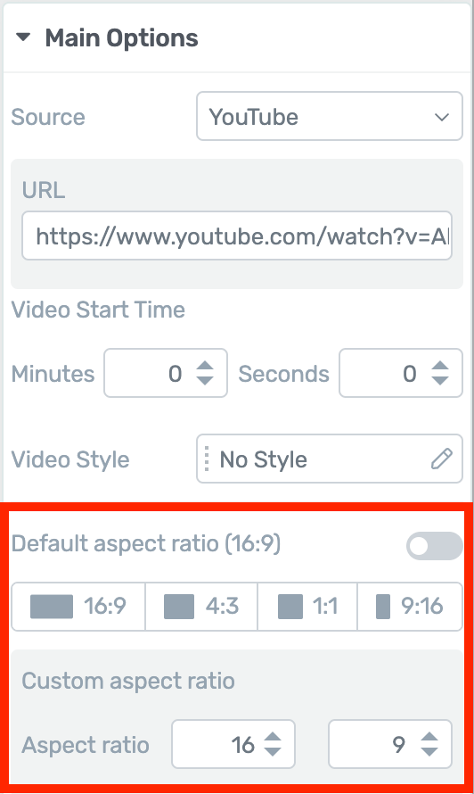 Simply type the numbers into the fields and the Video element will comply with your desired aspect ratio.