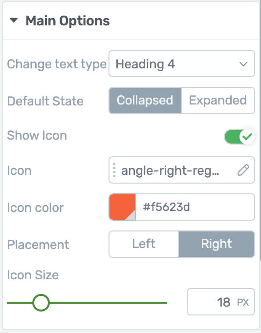 Toggle titles are wrapped in H4 tags by default. For SEO reasons, you may want to change that to a different heading tag or just to paragraph. Now you can with two clicks.