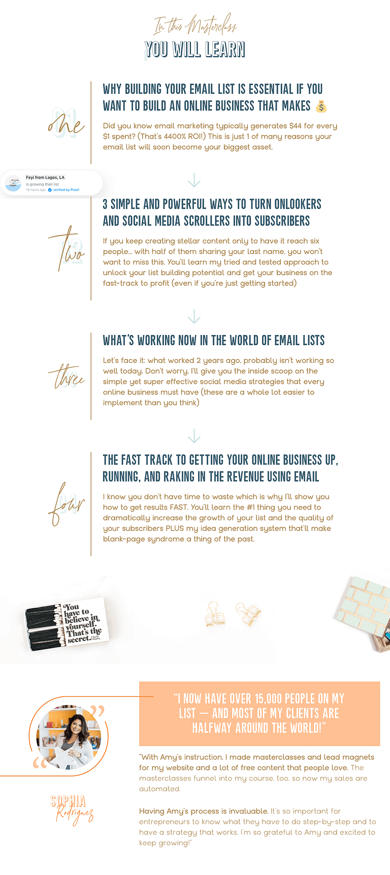 A high-converting registration page needs these key elements. I use a pre-built template in Thrive Architect because it has all of these ready to go.