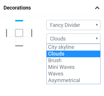 Then it's simply a case of clicking on a background section and choosing Decorations from the left-hand sidebar and choosing Fancy Divider from the dropdown menu.