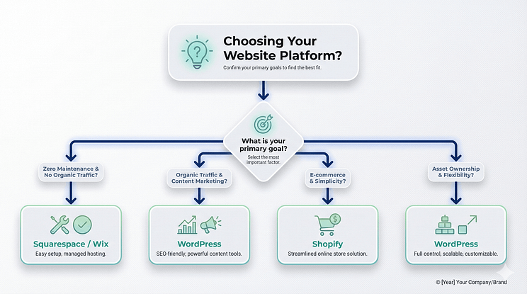 - If your primary goal is zero maintenance and you will never rely on organic traffic: Go with Squarespace/Wix.