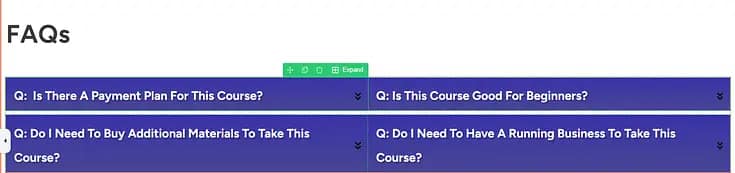 - List Questions & Answers: You can use a simple text box or, for a more polished look, use a "Toggle Element" (like an accordion) to keep the page clean until someone clicks to expand an answer.