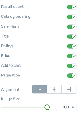 In the Thrive Architect sidebar, you can select specific products or filters that apply to the shop, and enable/disable features such as pagination, rating, sales flash labels and more.