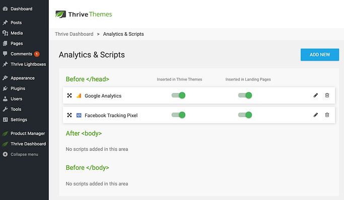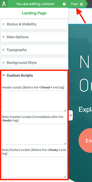 In Thrive Architect, this option has always been available and now we made it more accessible. This will allow you to add the script to LANDINGPAGES or STANDALONE PAGES even if you use a 3rd party theme.