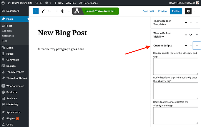 “For years now, we’ve had a Custom Page Scripts feature that has been buried a few menu-items deep in Thrive Architect.