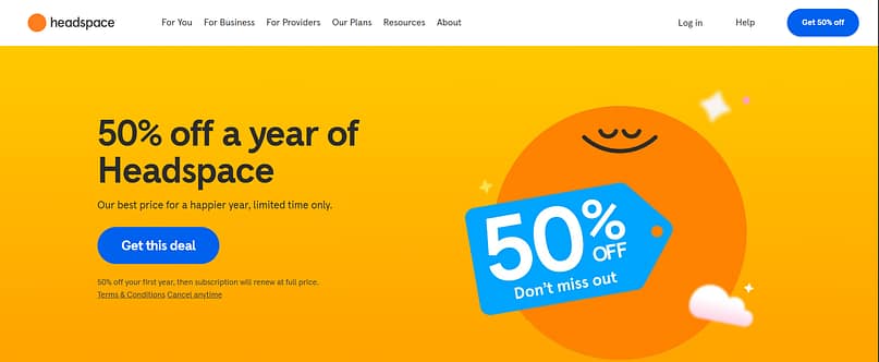 Headspace uses calming colors, simple shapes, and balanced spacing to reinforce its brand.