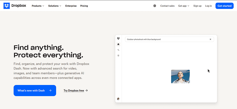 Dropbox uses a minimal layout with one primary message and one primary CTA.