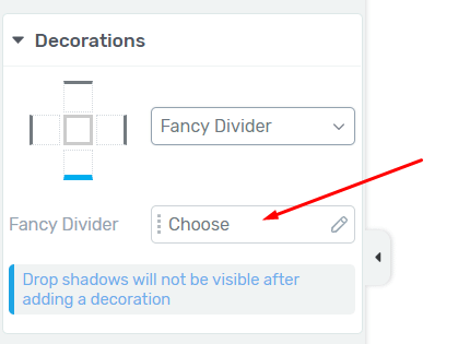 Then it's simply a case of clicking on a background section and choosing Decorations from the left-hand sidebar and choosing Fancy Divider from the dropdown menu.
