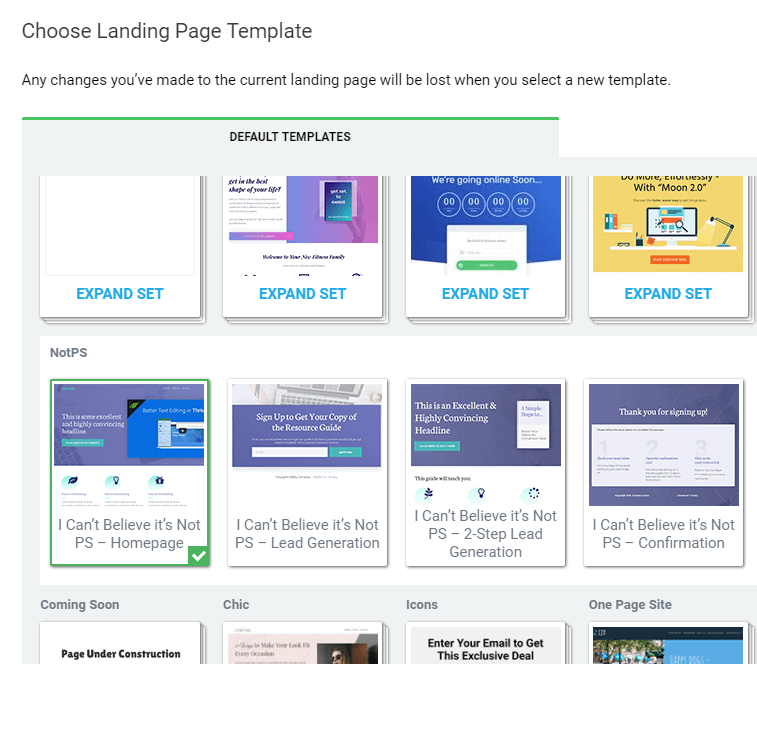 Landing page template sets in Thrive Architect