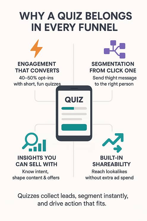 Bottom line: A quiz or assessment collects the lead, starts a focused conversation, and points each person to a next step that actually fits.