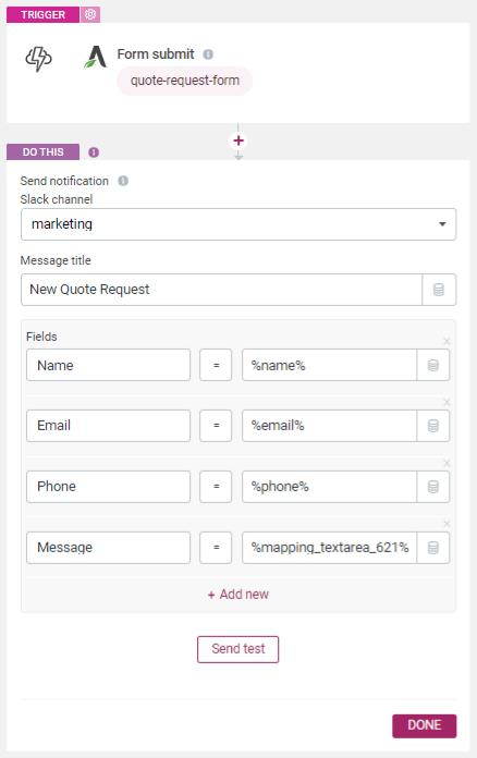 Example Automation: Receive a Custom Slack Notification When Someone Fills Out a Quote Request Form On Your Site